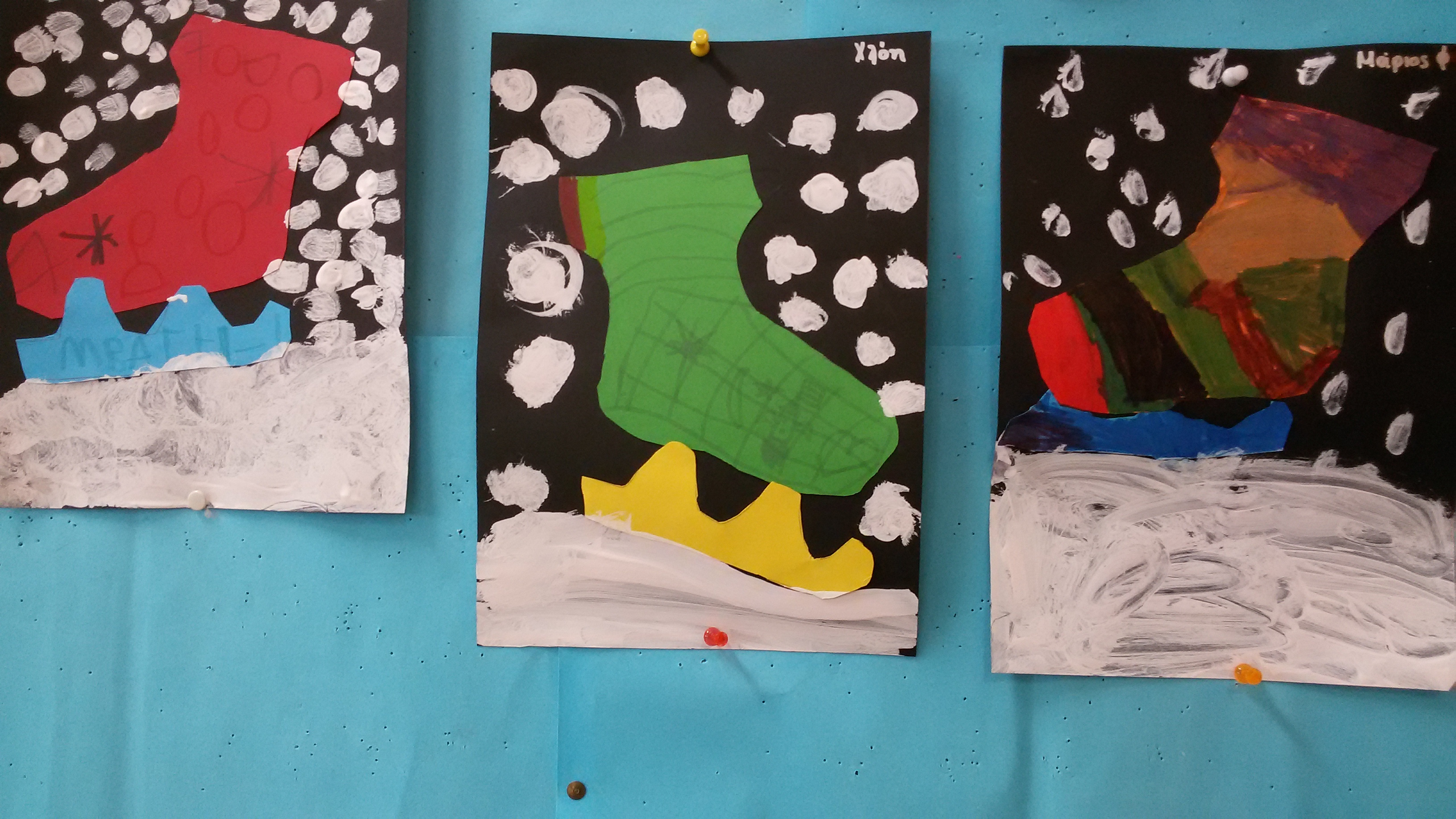 Φτιάξαμε σύνθετες λέξεις με το "χιόνι"...τις αντιγράψαμε και τις ζωγραφίσαμε.