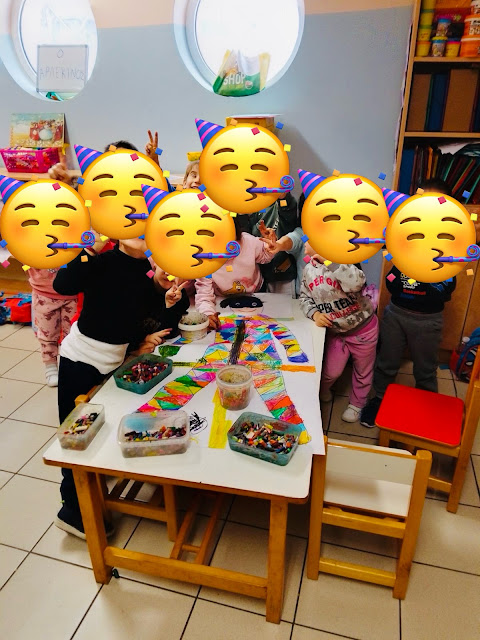 Στο ολοήμερο ως επέκταση και εμπέδωση των όσων είπαμε το πρωί, τα παιδιά έφτιαξαν έναν μεγάλο Αρλεκίνο ομαδικά, με βάση τις πραγματικές διαστάσεις ενός παιδιού, τον χρωμάτισαν και το διασκέδασαν!
